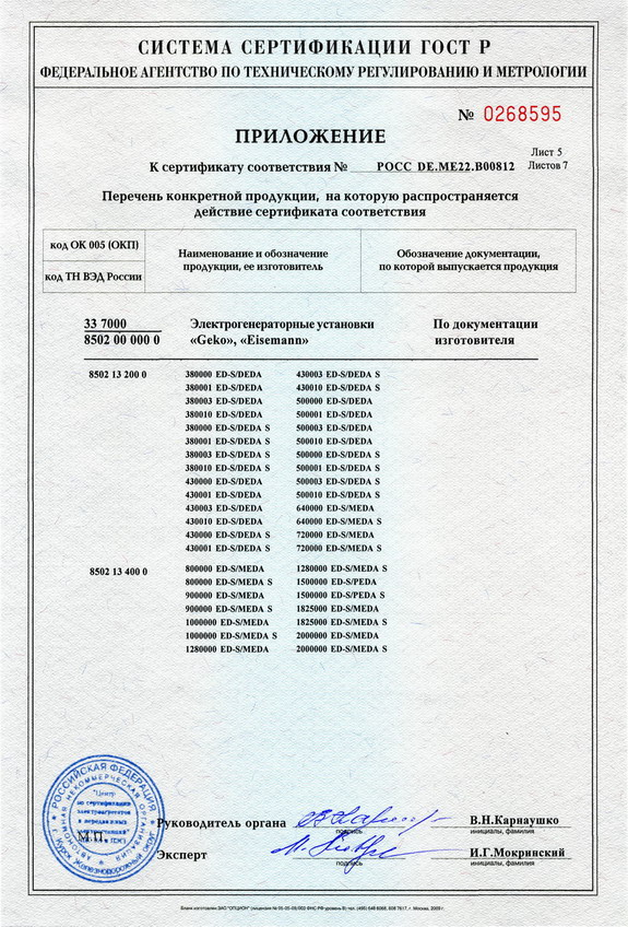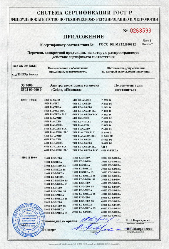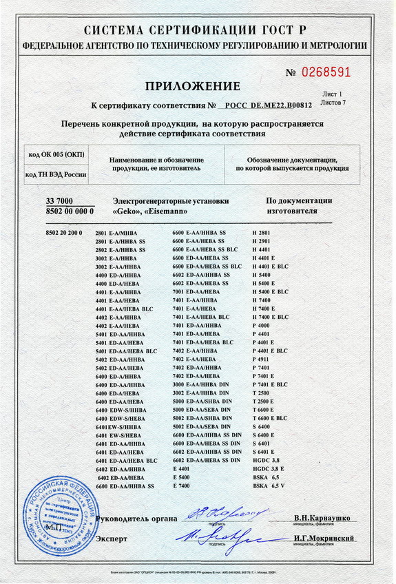 Сертификаты на генераторы GEKO