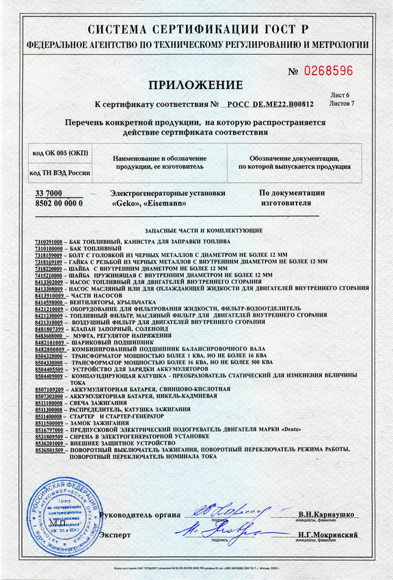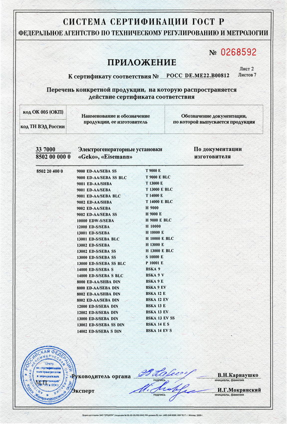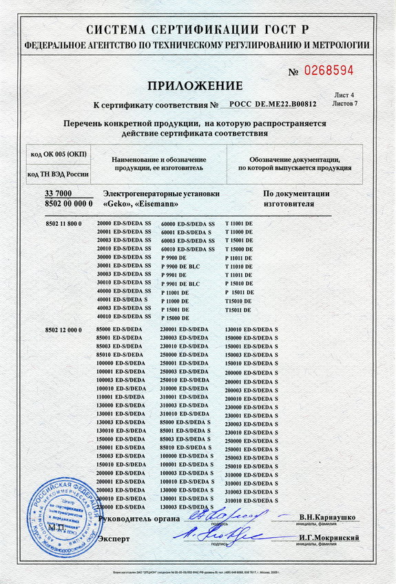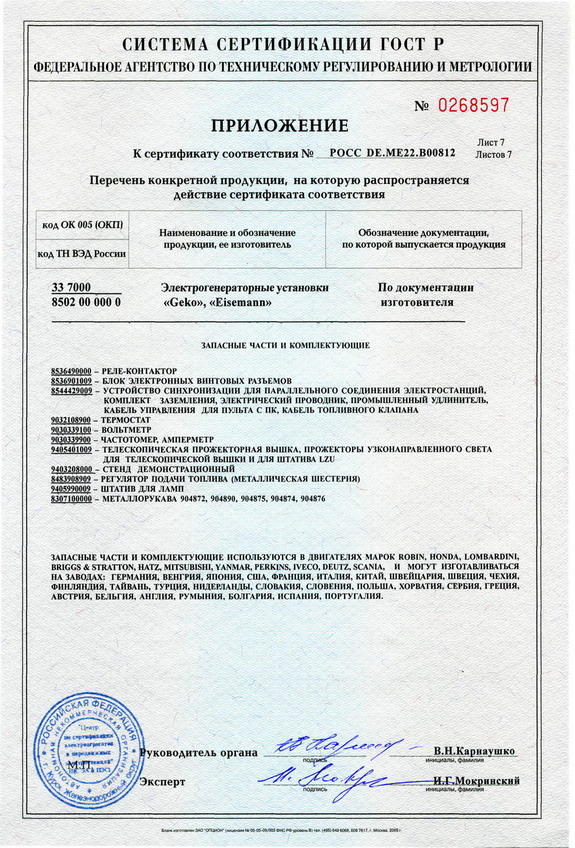 Сертификаты на генераторы GEKO